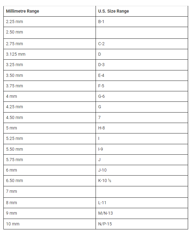 Crochet Hook Sizes