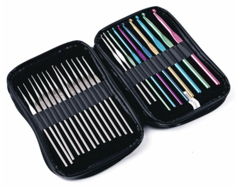 Aluminum: Aluminum crochet hooks are inexpensive and widely available. They are quite popular, especially among beginners. However these do hurt your fingers after a couple of hours. They are available in a variety of sizes and colors.
